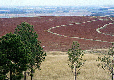 | ブラジルコーヒーを支えてきたのは、テラローシャという赤色の肥沃な土壌だ。ここはサンパウロ州内陸部のカンピナス近郊にある日系の東山農場。 |